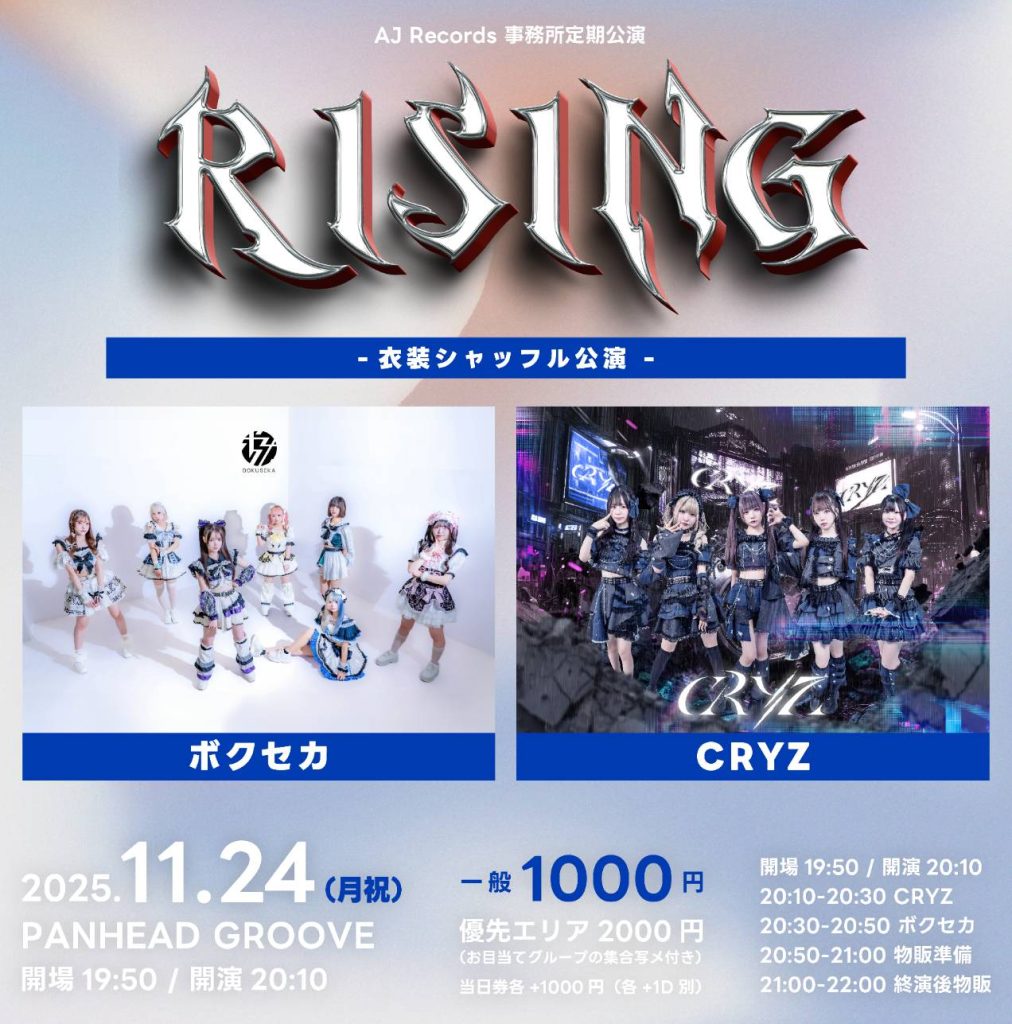 ■ 入場順:①優先エリア(整理番号順)▶ ②一般(整理番号順) ▶ ③当日券(当日整列順)■ 出演:ボクセカ / CRYZ